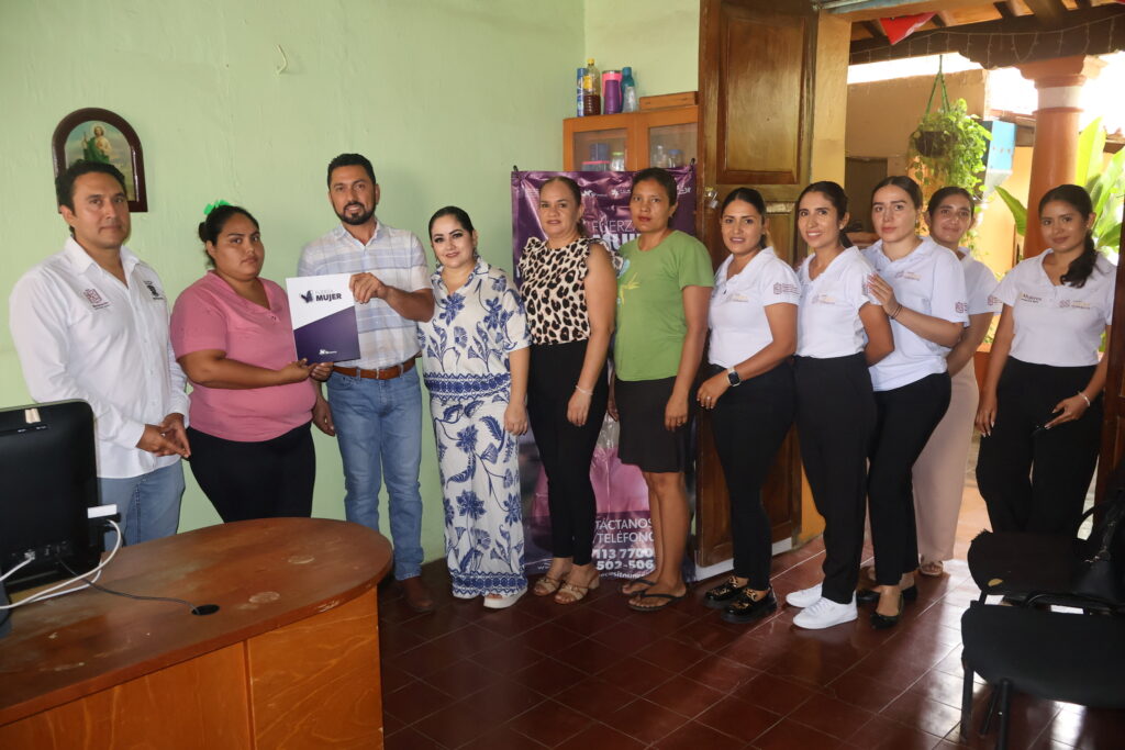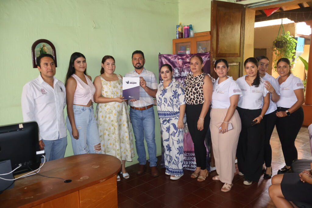 El presidente municipal, Hever Tentory García, junto con funcionarias del programa, entregó los apoyos a las beneficiarias, quienes podrán desarrollar sus proyectos gracias a esta iniciativa.