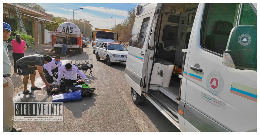 Hoy viernes a las 9 y media de la mañana aproximadamente, se suscitó un fuerte choque entre dos motos en el Libramiento Batallón Huetamo de esta ciudad, a la altura del taller mecánico Hugo Boss, dejando lastimado el tripulante de la primera moto y lesionados 2 menores de edad que viajaban en la segunda unidad, quienes no portaban casco protector.