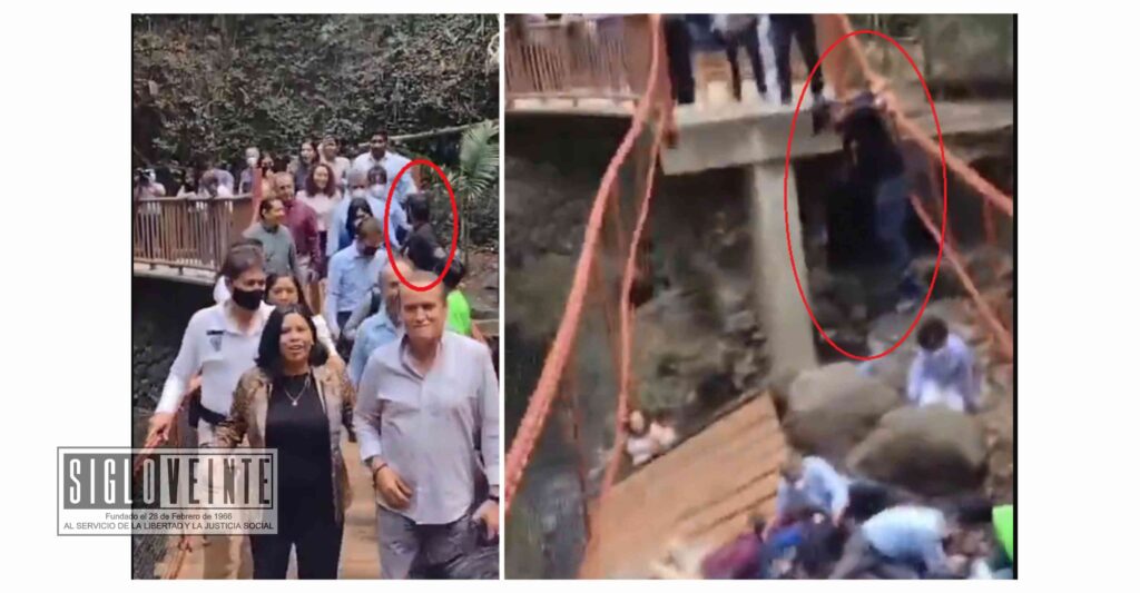“Los invito a observar en los diferentes videos que se encuentran circulando en las redes sociales donde se puede advertir que hay más de una persona brincando (tal y como lo expreso el propio alcalde José Luis Urióstegui), y se encuentran cruzando el puente al mismo momento más de 15 personas”, afirmó.
