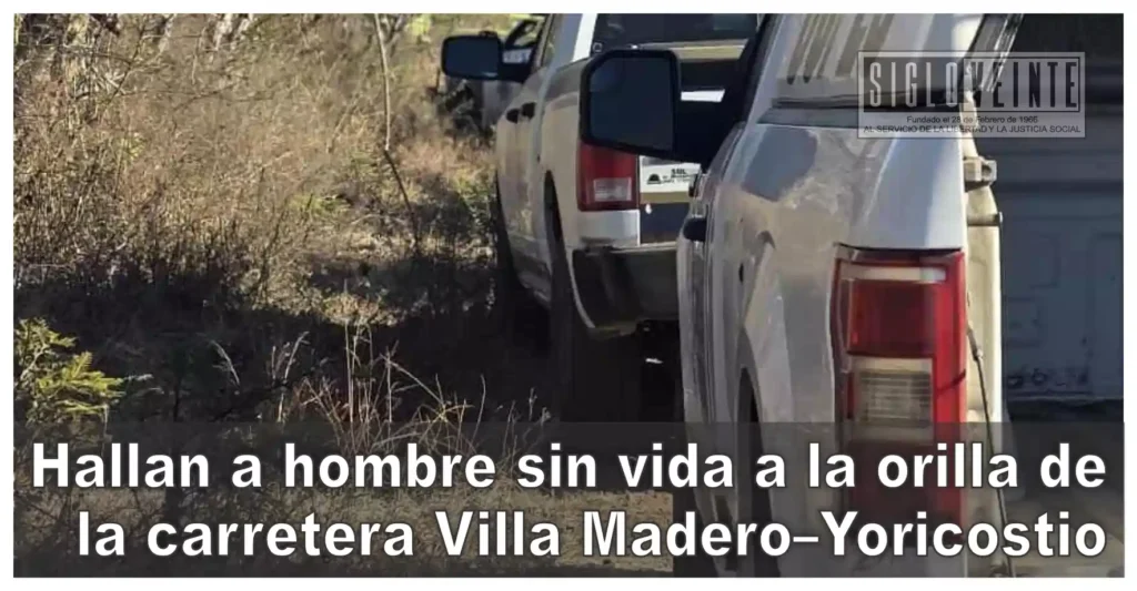 El cuerpo sin vida de un hombre, que presentaba una herida de proyectil de arma de fuego en la cabeza, fue localizado la mañana de este lunes a un costado de la carretera que comunica el municipio de Villa Madero con la localidad de Yoricostio, de acuerdo con información policial.