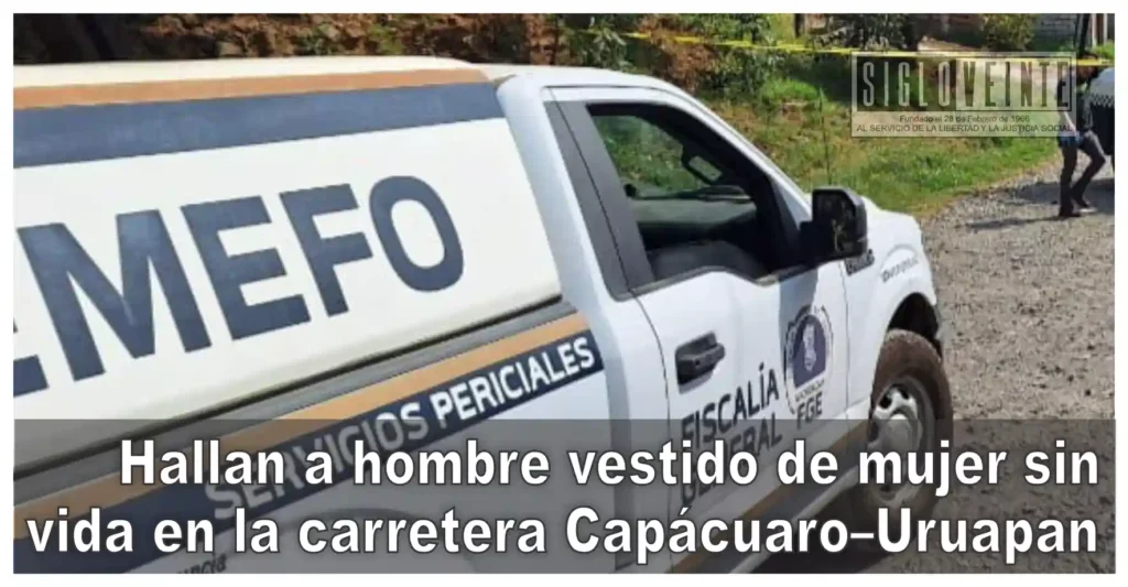 El cuerpo sin vida de Capácuaro persona fue localizado en las inmediaciones de la comunidad indígena de Capacuaro, perteneciente al municipio de Uruapan, lo que movilizó a corporaciones de seguridad y personal ministerial.