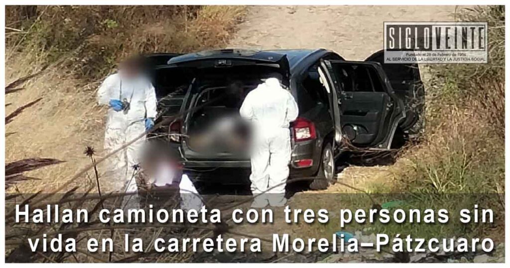 Un aviso ciudadano derivó, la tarde de este lunes, en el descubrimiento de un hecho de alto impacto sobre la carretera Morelia–Pátzcuaro, donde fue ubicada una camioneta abandonada con tres hombres asesinados en su interior, en un tramo cercano al fraccionamiento Arko San Pedro y a la localidad de Urapilla, dentro del municipio de Morelia.