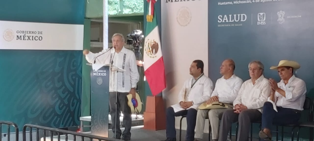 En Huetamo, el presidente estuvo acompañado por el gobernador Silvano Aureoles Conejo; el secretario de Salud, Jorge Alcocer Varela; el director general del Instituto Mexicano del Seguro Social (IMSS), Zoé Robledo Aburto; el director del Hospital Rural de Huetamo, José Francisco Gómez Alcaraz; el presidente municipal de Huetamo de Núñez, Juan Luis García Conejo; así como integrantes del gabinete de salud.