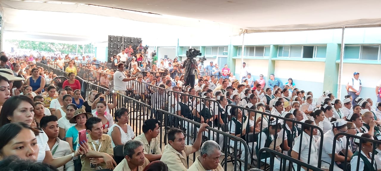 Ahora vamos a hacer una convocatoria. Todos los médicos para que podamos cubrir las vacantes que existen en el Seguro Social, en el sistema de salud pública. Eso es lo segundo», comentó en su discurso al personal médico presente. López Obrador, reiteró que durante su sexenio quedarán basificado todo el personal médico contratado actualmente por honorarios.