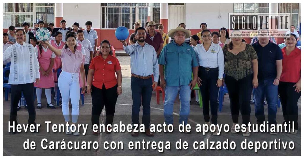 El presidente municipal Hever Tentory García encabezó este miércoles un acto significativo en la Telesecundaria 20 de Noviembre, ubicada en la tenencia de Paso de Núñez, donde se llevó a cabo la entrega de calzado deportivo como parte del programa estatal “Jalo a Estudiar, Jalo por la Paz”, iniciativa impulsada por la Secretaría de Educación del Estado de Michoacán.