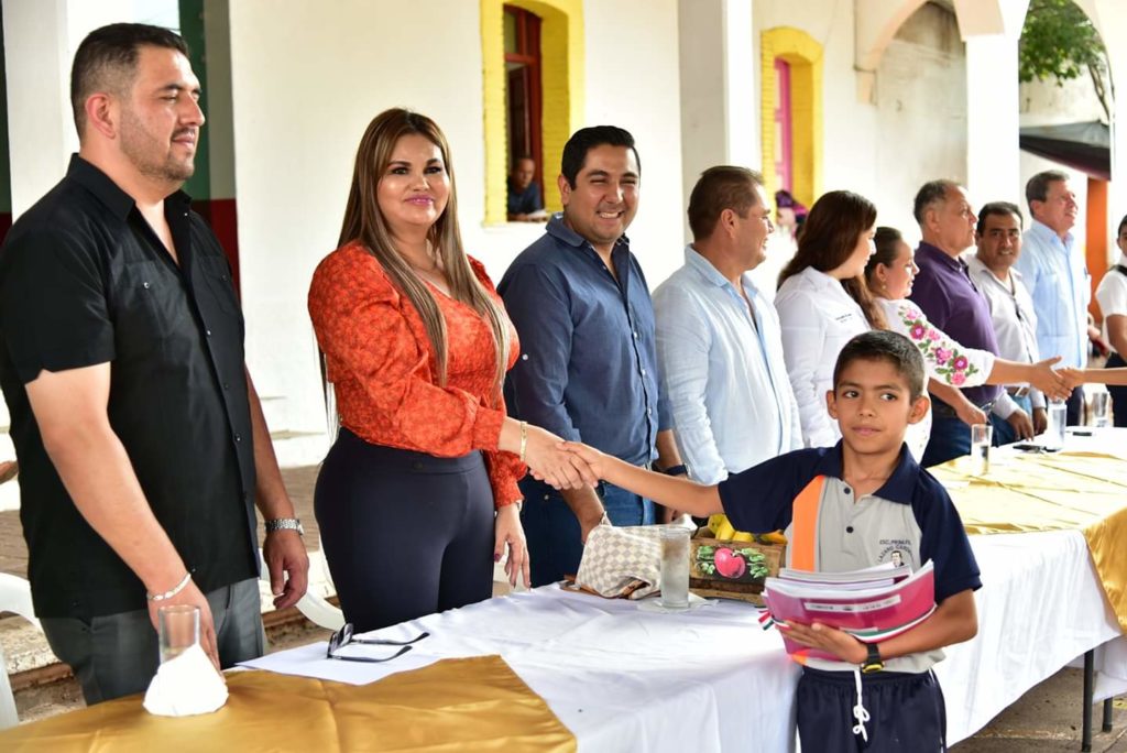 La alcaldesa motivó a los estudiantes a dar lo mejor de sí para obtener buenos resultados durante este año escolar, mencionando también que apoyará con mas vehículos para el transporte de alumnos, además realizó la entrega simbólica de libros de texto gratuito, los cuales ya están en manos de los menores.
