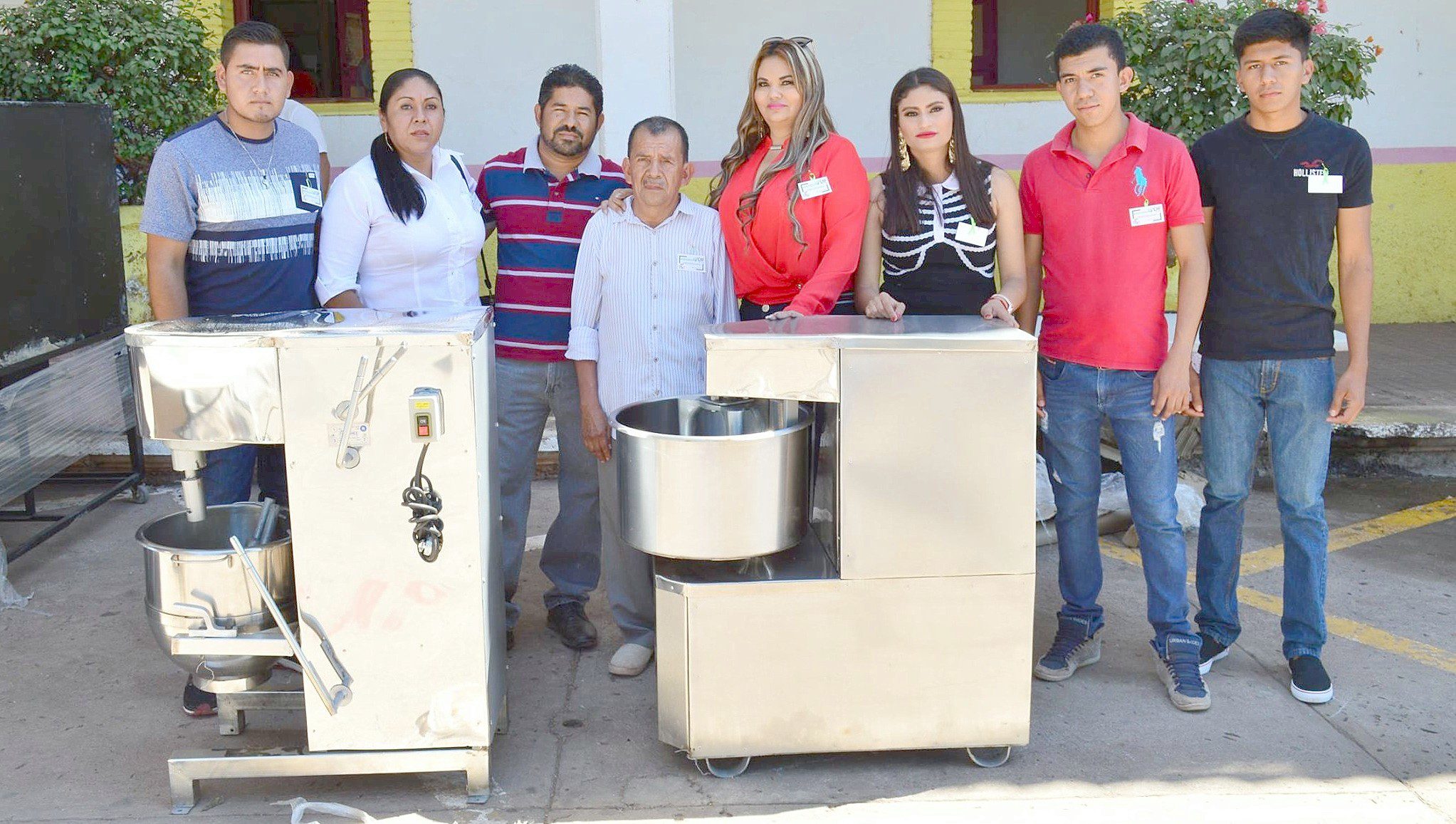 Así mismo, se realizó la entrega de material para un proyecto de panadería con la intención de apoyar a grupos de emprendedores e integrarlos al sector laboral, el equipo consiste en un horno para panadería, una amasadora con capacidad de 5 kilos, una cortadora, 5 charolas, 3 moldes para panqué y un carro espiguero.