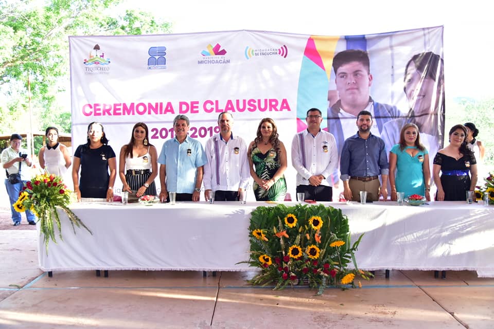 La tarde del pasado viernes se realizó la ceremonia de clausura de cursos del Colegio de Bachilleres plantel Tiquicheo, culminando sus estudios 41 alumnos, teniendo como madrinas a la presidenta municipal de Tiquicheo, Hortencia Sánchez Rodríguez y Jaqueline Gómez Picazo, directora del Instituto Tecnológico Superior de Huetamo.