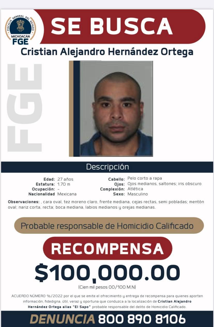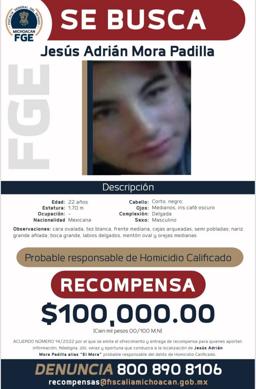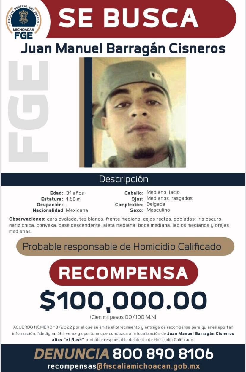 La Fiscalía General de Michoacán ofrece 100 mil pesos por cada una de estas personas a quien proporcioné información sobre el paradero de cada de los 6 presuntos delincuentes.