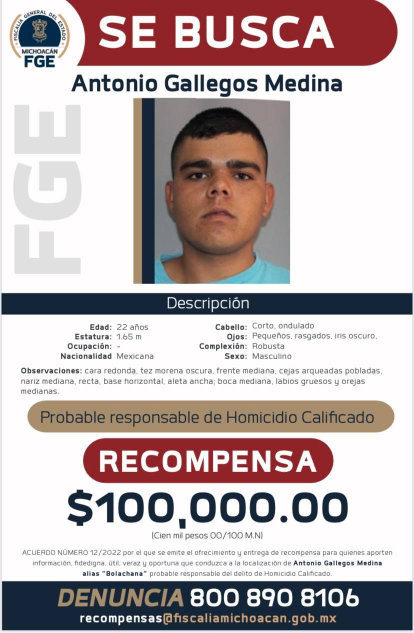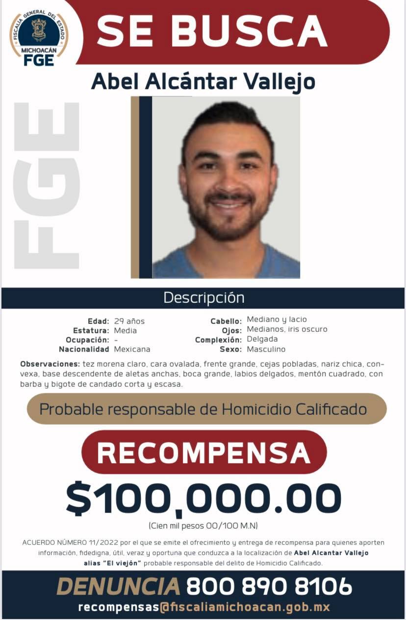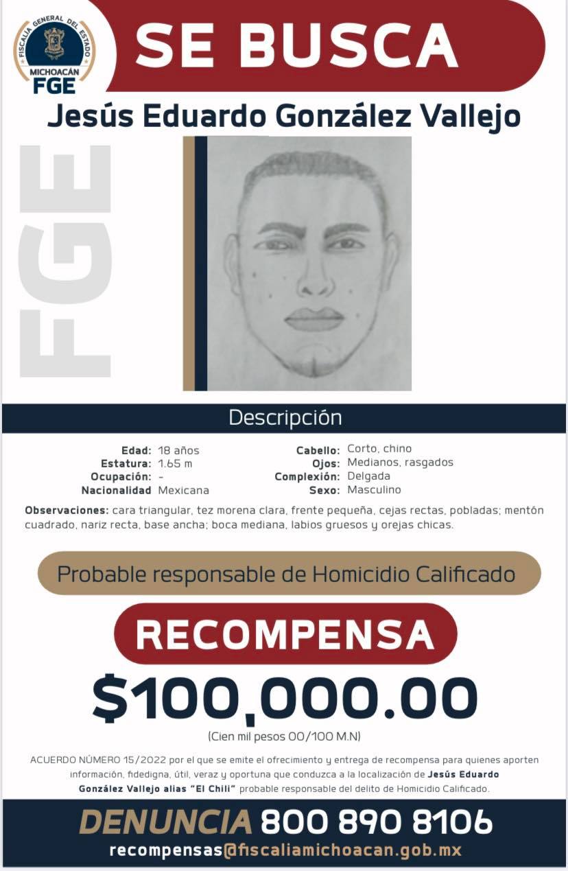 La Fiscalía General de Michoacán ofrece 100 mil pesos por cada una de estas personas a quien proporcioné información sobre el paradero de cada de los 6 presuntos delincuentes.
