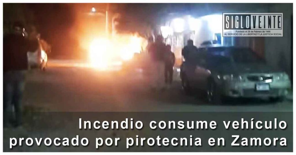 Un vehículo estacionado fue consumido por el fuego durante la noche de este sábado, en un hecho ocurrido en la colonia Francisco J. Múgica de la ciudad de Zamora, presuntamente relacionado con el uso de pirotecnia por parte de menores de edad.