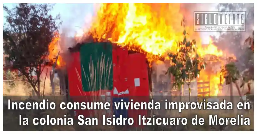 Una estructura precaria construida con madera y láminas de cartón fue consumida por el fuego la mañana de este miércoles en la colonia San Isidro Itzícuaro, al poniente de Morelia, de acuerdo con reportes de cuerpos de auxilio.