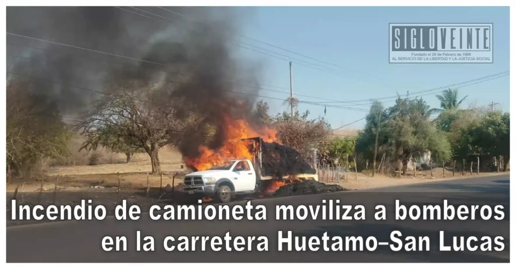 Un vehículo de carga fue consumido por el fuego la tarde de este jueves sobre la carretera federal 51, en el tramo que comunica a los municipios de Huetamo y San Lucas, a la altura de la localidad de Purechucho.