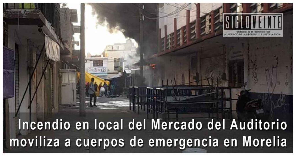 La tarde de este domingo se registró un incendio en un establecimiento comercial ubicado al interior del Mercado del Auditorio, en la colonia Ventura Puente, al sur de la capital michoacana, lo que generó la movilización de bomberos de distintas corporaciones.