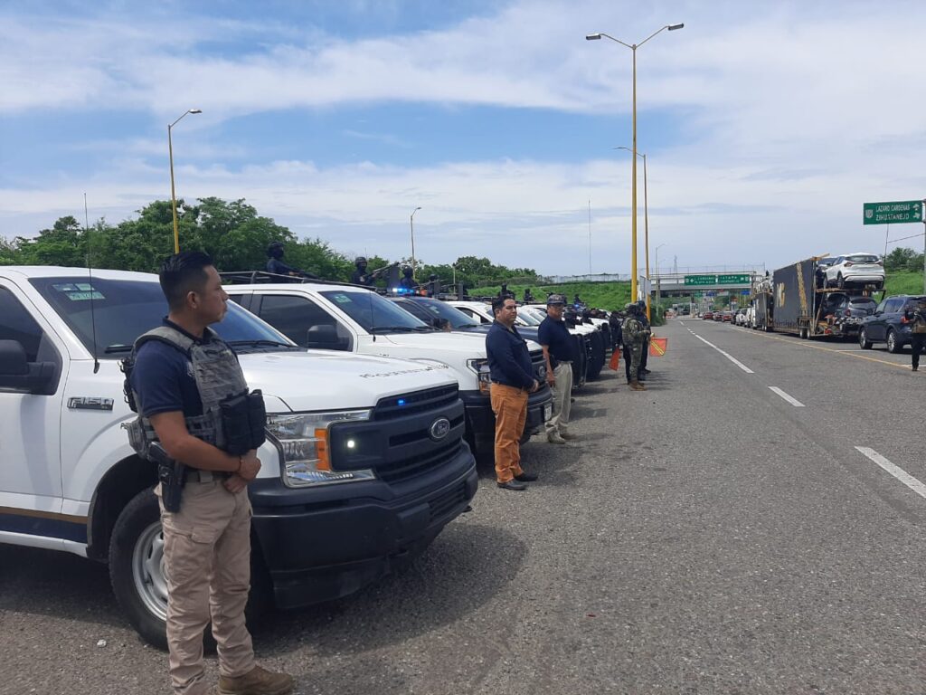 En las labores operativas participan agentes de las Fiscalías Generales de los estados de Michoacán y Guerrero, oficiales estatales y Policía Preventiva Municipal de la Unión de Isidoro Montes de Oca.