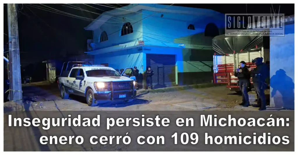 La violencia en Michoacán se mantuvo durante enero con el registro de 109 homicidios dolosos, cifra superior a los 87 casos reportados oficialmente por el gobierno estatal, según un conteo hemerográfico. Los asesinatos se distribuyeron en al menos 28 municipios, destacando Uruapan con 22 casos, Apatzingán con 14, y Morelia y Zamora con nueve cada uno, concentrando en conjunto más del 50 por ciento del total.