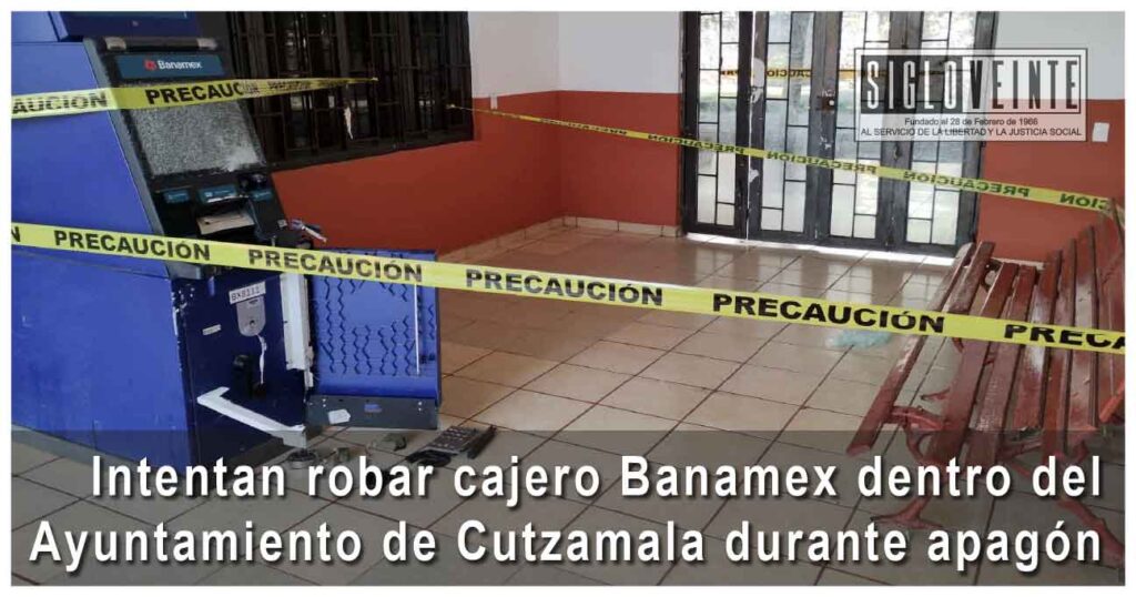 Durante las primeras horas de este viernes, uno o varios individuos intentaron sustraer el dinero del cajero automático de Banamex instalado dentro del Ayuntamiento de Cutzamala de Pinzón, aprovechando que la zona permanecía sin energía eléctrica.