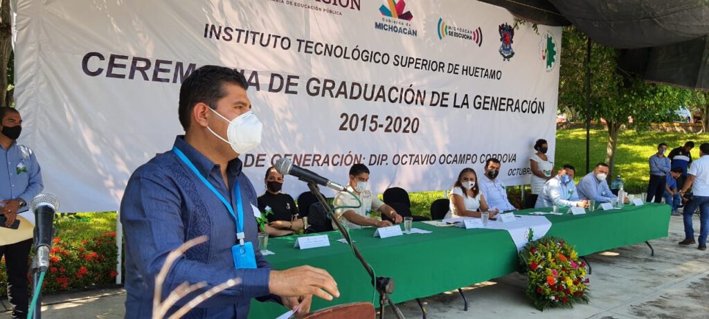 Por su parte el diputado local por este Distrito XVIII y padrino de la generación 2015-2020, Octavio Ocampo Córdova, felicitó a los egresados por cumplir con ellos mismos y con la esperanza de sus padres, la meta de completar sus estudios universitarios, así mismo, los invitó hoy más que nunca a componer el tejido social, familiar y profesional, en beneficio propio, de sus familias, comunidades y del Estado.