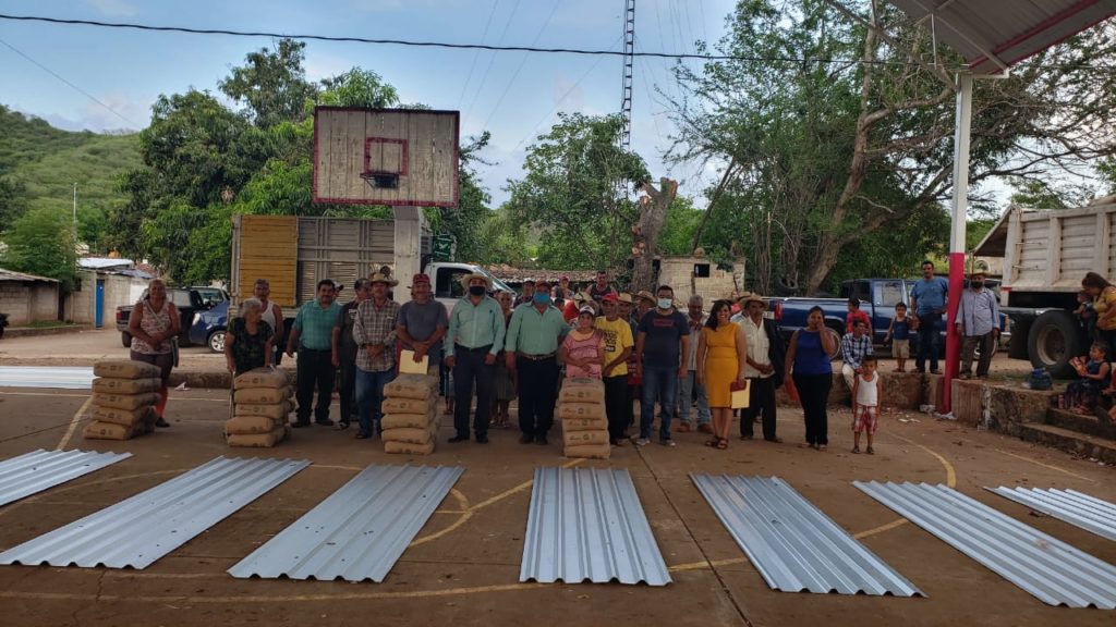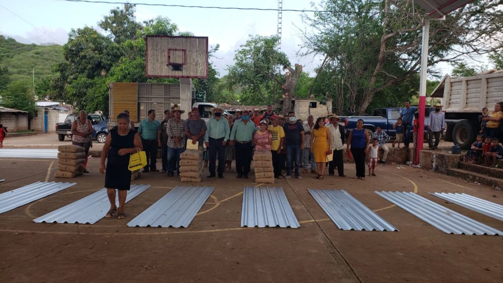 Estas acciones fueron encabezadas por la alcalde Jazmín Arroyo Martínez, en las que se entregaron apoyos a 40 beneficiarios de las localidades de Chirangangueo, Anonas, Ceibas Del Pilón Chico y Guajes DeTerán, de lo cuales 16 familias recibieron un paquete de 10 láminas galvanizadas cada una y 24 familias recibieron bultos de cemento para mejorar los pisos de su vivienda.