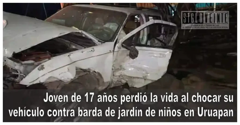Una adolescente de 17 años falleció durante la madrugada de este sábado, luego de que la camioneta que conducía se impactara contra la barda perimetral de un jardín de niños en la colonia Zumpimito, al sur del municipio de Uruapan.