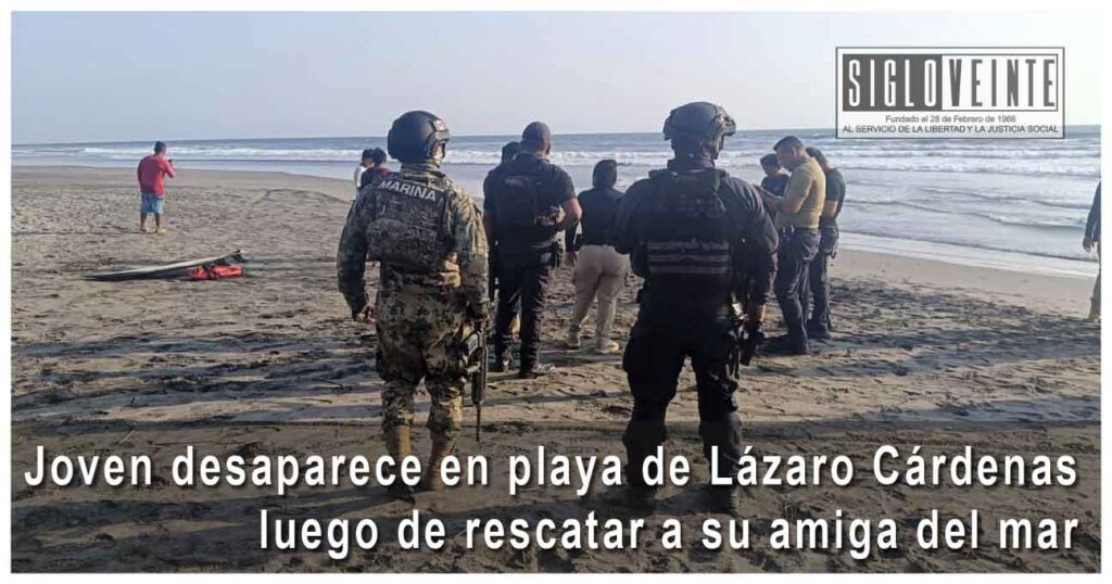 La comunidad de Playa Jardín, en el municipio de Lázaro Cárdenas, se mantiene en un estado de preocupación ante la desaparición de Jesús M., de 16 años de edad y estudiante del CETIS 34, quien no ha sido localizado luego de ingresar al mar para auxiliar a una amiga que era arrastrada por la corriente.