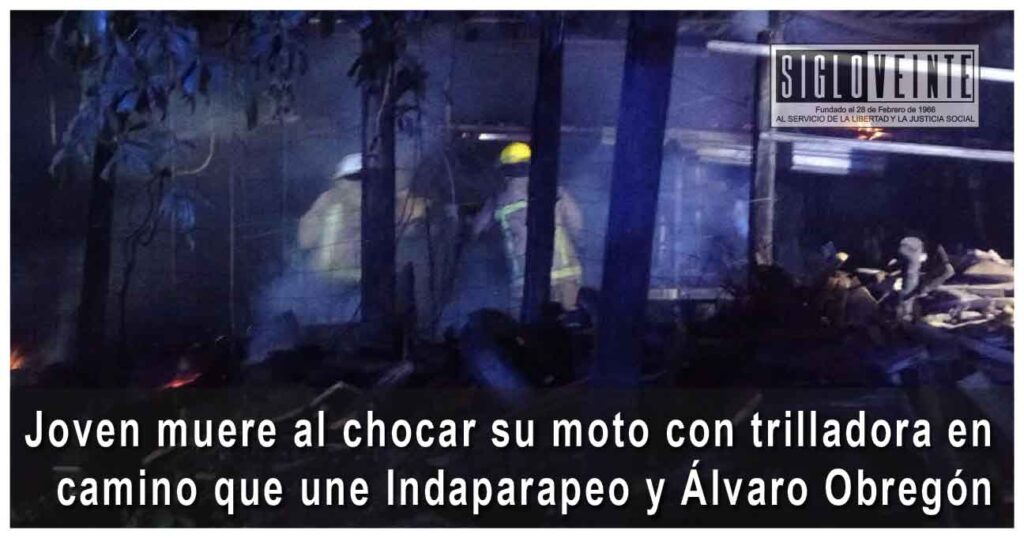 Un percance vial registrado en una zona agrícola del municipio de Indaparapeo dejó como saldo la muerte de un joven que tripulaba una motocicleta, luego de colisionar con una máquina utilizada para labores de cosecha.