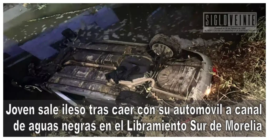 Un joven automovilista resultó prácticamente sin lesiones luego de que el vehículo que conducía cayera a un canal de aguas negras ubicado a un costado del Libramiento Sur de Morelia, en las inmediaciones de Casa Michoacán, informaron fuentes policiales.