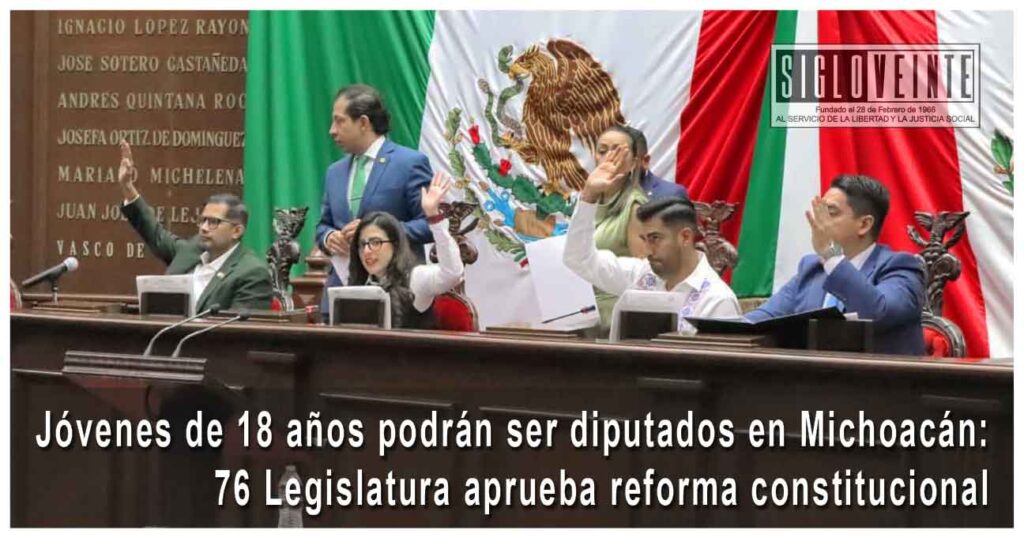 El Pleno del Congreso del Estado aprobó reformar el artículo 23 de la Constitución Política de Michoacán, a fin de reducir el requisito de edad para ser diputado en Michoacán al pasar de 21 a 18 años.