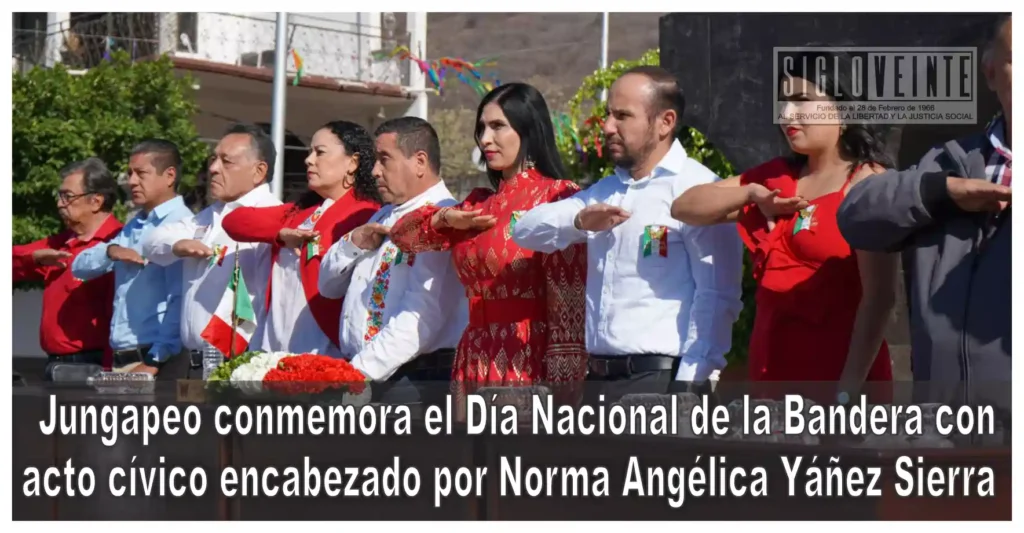 El Ayuntamiento de Jungapeo, encabezado por la alcaldesa Norma Angélica Yáñez Sierra, presidió la ceremonia conmemorativa por el Día Nacional de la Bandera, en honor a uno de los símbolos patrios más representativos de México.