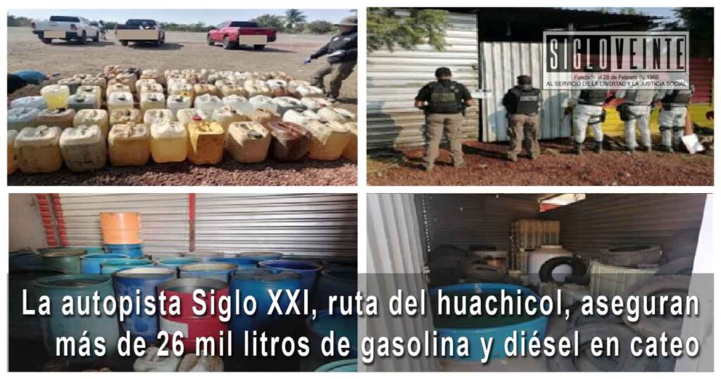 El operativo se llevó a cabo en un inmueble localizado en el kilómetro 159 000 de la autopista Siglo XXI, Uruapan – Lázaro Cárdenas, perteneciente al municipio de Múgica, donde se logró el aseguramiento de 26 mil 32 litros de hidrocarburo (gasolina y diésel) distribuidos en tambos, bidones, cisternas y tinacos de plástico, con capacidades de 20, 25, mil y cinco mil litros.