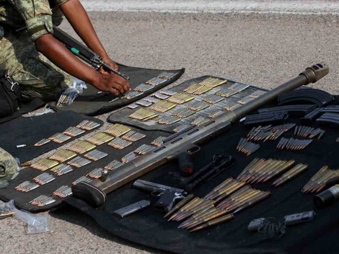 El personal de la Guardia Nacional adoptó medidas de seguridad e inspeccionó la unidad automotriz marca Chevrolet Blazer y localizó 1 fusil tipo Barrett, calibre 50, con 1 cargador metálico con 9 cartuchos, 1 arma larga tipo AK-47, calibre 7.62×39 con 1 cargador de disco insertado con 100 cartuchos y 1 fusil tipo AR-15, calibre .223 con un cargador metálico con 30 cartuchos.