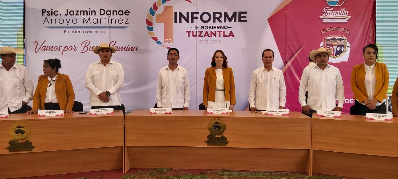 Ante el pueblo de Tuzantla, de los integrantes del cabildo y de cientos de ciudadanos, Jazmín Arroyo Martínez, rindió su Primer Informe de Gobierno al frente de la administración municipal 2018-2019, enfatizando que ser presidenta municipal de Tuzantla significa un alto honor, que se logra a base de entrega y trabajo y esfuerzo de la mano de la gente.