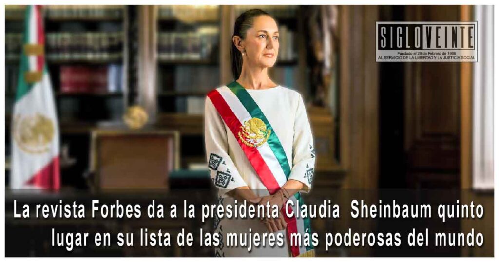 La Presidenta Claudia Sheinbaum Pardo se situó en el quinto lugar de la lista de Forbes de las mujeres más poderosas del mundo en este 2025, junto con lideresas políticas europeas y asiáticas, y empresarias de diversos países.