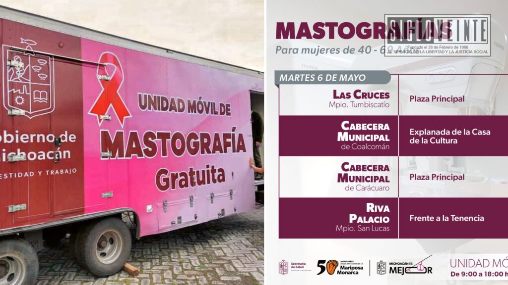 Mujeres de entre 40 y 69 años de los municipios de San Lucas, Carácuaro y Nocupétaro podrán acceder esta semana a estudios gratuitos de mastografía, gracias al despliegue de unidades móviles coordinado por la Secretaría de Salud de Michoacán (SSM). Señaló en entrevista Alfredo Romero Díaz, el Director del Centro de Salud con Servicios Ampliados (CESSA) Huetamo.