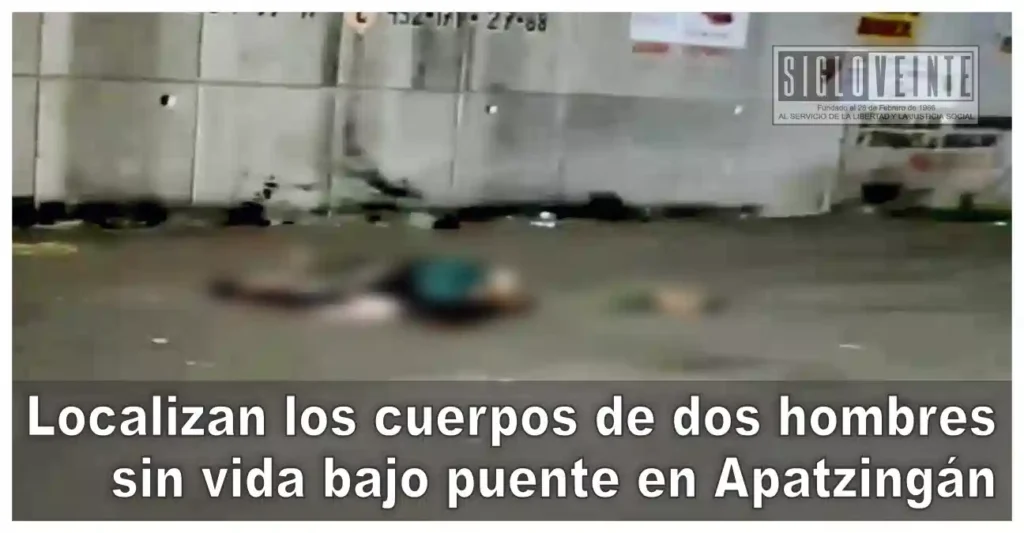 La mañana de este miércoles, alrededor de las 05:00 horas, dos hombres fueron localizados sin vida bajo un puente ubicado en la carretera Apatzingán–Cuatro Caminos, a la altura de la comunidad de San Antonio La Labor, en el municipio de Apatzingán.