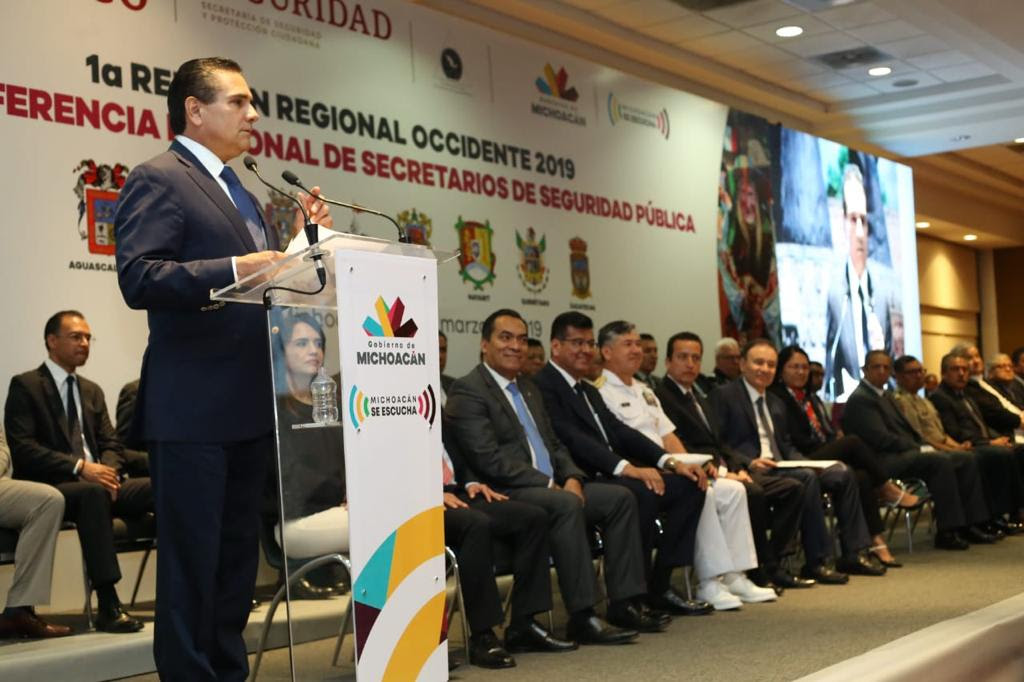 Al dar la bienvenida a sus homólogos de Aguascalientes, Colima, Guanajuato, Jalisco, Nayarit, Querétaro y Zacatecas, el secretario de Seguridad Pública estatal, Juan Bernardo Corona Martínez, destacó que, al ser la seguridad tema prioritario para el Gobernador Aureoles Conejo, la inversión sin precedente al rubro ha permitido que hoy la Policía Michoacán sea reconocida a nivel nacional como la segunda corporación que más acciones ha emprendido para el fortalecimiento de sus elementos.
