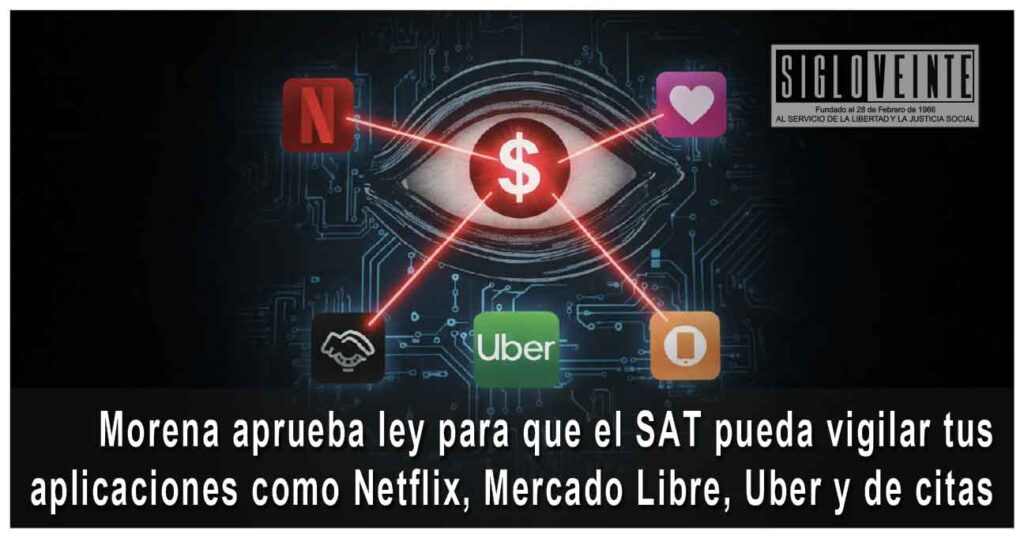 La Cámara de Diputados aprobó una reforma al Código Fiscal de la Federación, con la que se autoriza que el Servicio de Administración Tributaria (SAT) revise en tiempo real y de forma permanente las operaciones realizadas en plataformas digitales como Netflix, Mercado Libre, Uber y hasta aplicaciones de citas.