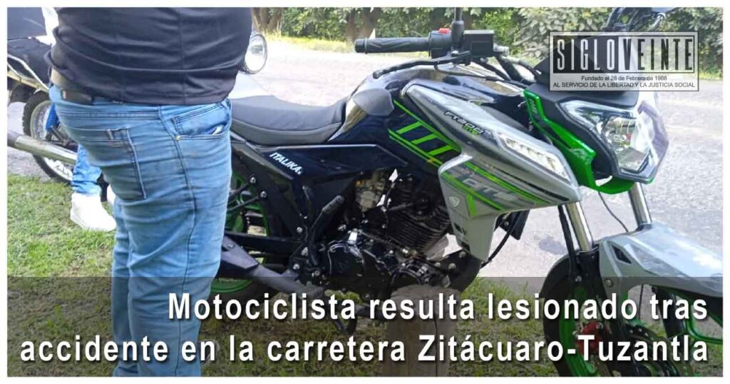 Un hombre de 26 años resultó lesionado la tarde del domingo tras un incidente en la carretera Zitácuaro-Tuzantla, luego de que, según testigos, su motocicleta fuera impactada por un automóvil que se dio a la fuga.