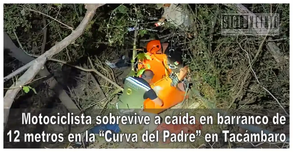 Una mujer que viajaba a bordo de una motocicleta fue rescatada con vida luego de precipitarse a un barranco de aproximadamente 12 metros de profundidad en la carretera Tacámbaro–Pedernales, en el tramo conocido como la “Curva del Padre”.