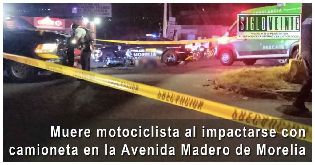 Un motociclista perdió la vida la noche del martes en un accidente ocurrido sobre la avenida Madero Poniente, a la altura de las colonias Niño Artillero y Loma Dorada, en Morelia. En el percance también estuvo involucrada una camioneta particular, informaron autoridades policiales.