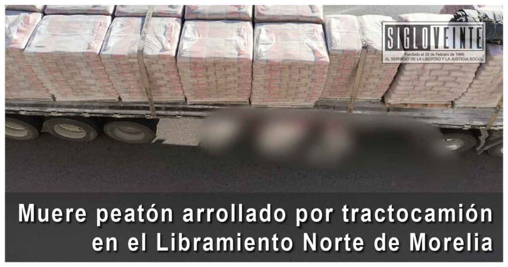 Un peatón perdió la vida al ser arrollado por un tractocamión que transportaba cemento sobre los carriles centrales del Libramiento Norte de Morelia, cerca del Distribuidor Vial de la salida a Salamanca, informaron autoridades policiales.