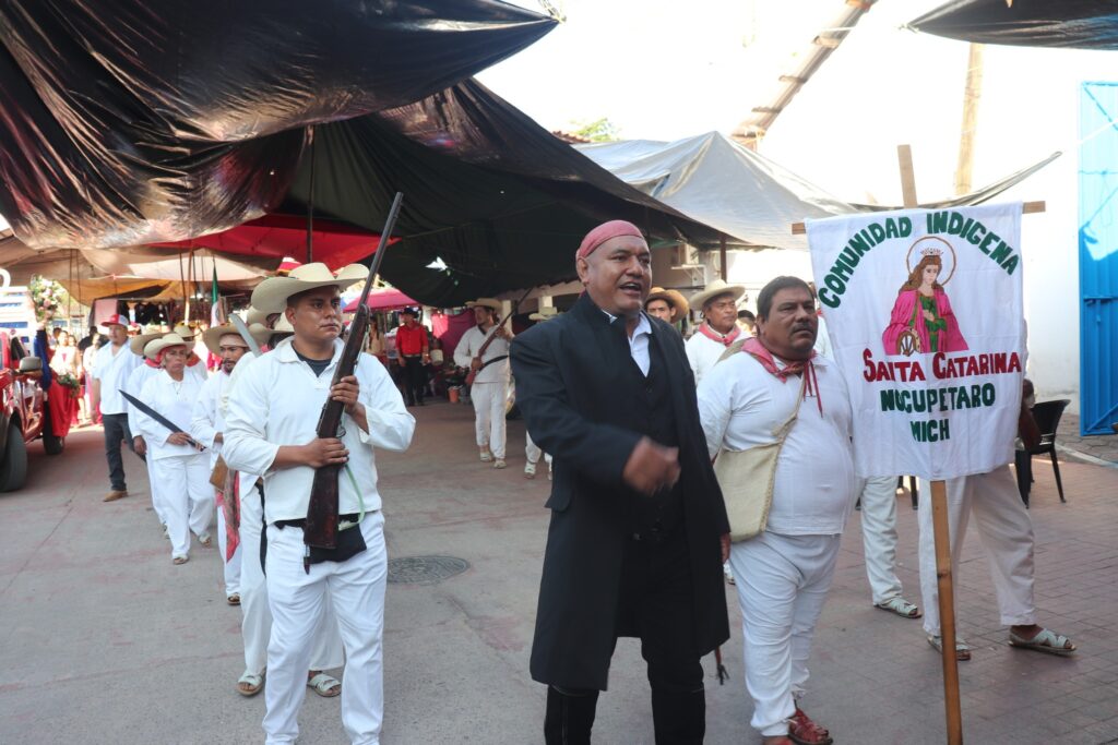 La ceremonia fue presidida por el alcalde Gonzalo Nares Gómez, acompañado del representante del gobernador del estado, el alcalde de Carácuaro, Hever Tentory García; el diputado local Vicente Gómez Núñez; el párroco de la Iglesia Santa Catarina, Alberto Aguilar Contreras; así como regidores, directores de las áreas municipales, miembros de la comunidad indígena y una numerosa representación de hombres a caballo.