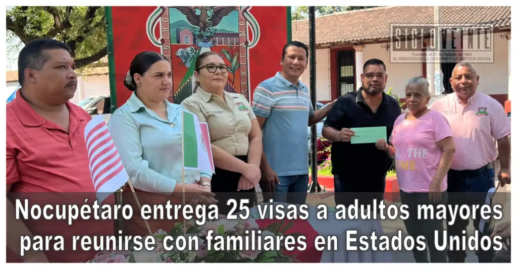 En un esfuerzo por fortalecer los lazos familiares entre migrantes y sus seres queridos, el Gobierno Municipal de Nocupétaro realizó la entrega de 25 visas americanas a igual número de adultos mayores, quienes podrán viajar a Estados Unidos para reencontrarse con familiares a los que, en muchos casos, no han visto durante años.
