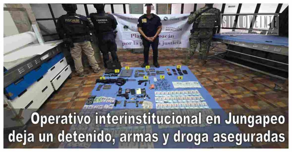 La acción se llevó a cabo en un predio localizado en la tenencia de Lázaro Cárdenas, donde elementos de la Secretaría de Seguridad Pública (SSP) y de la Secretaría de Marina (Semar) brindaron apoyo a la Fiscalía General del Estado (FGE). Durante la intervención, las autoridades decomisaron dos armas de fuego de calibres 5.56 milímetros y 9 milímetros, además de una réplica de pistola tipo escuadra.