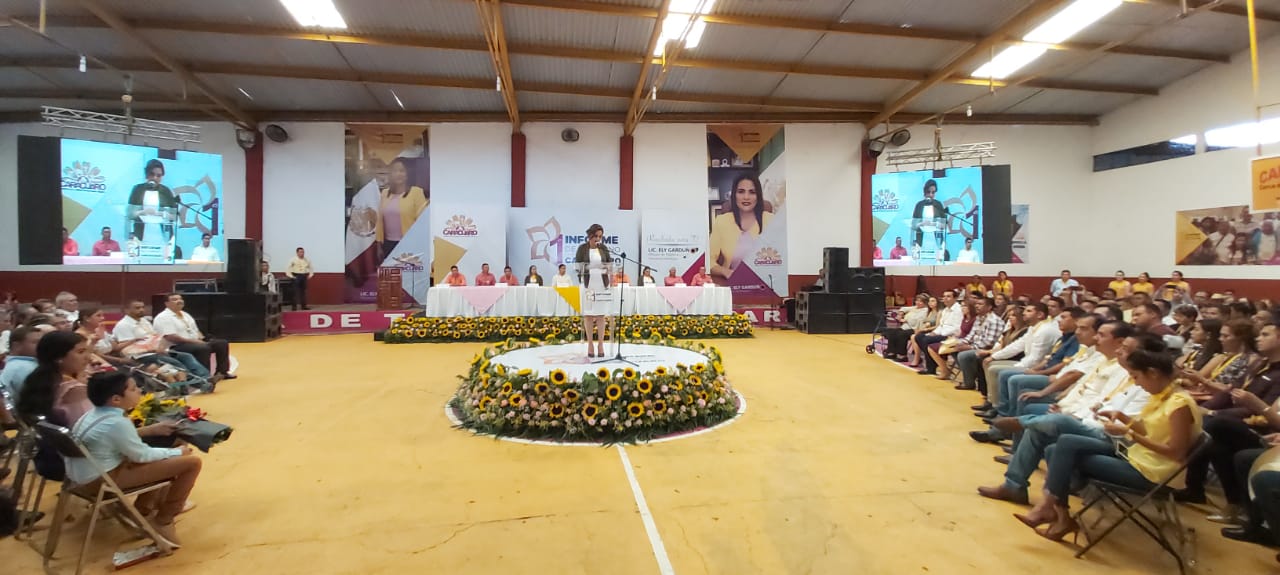 Definitivamente falta mucho por realizar, pero hemos traído a Carácuaro un nuevo rostro, cercanía a nuestra gente, resultados inmediatos y sobre todo atención de calidad y calidez que nuestra gente tanto demandaba, expresó la presidenta Elisenda Garduño Garduño, durante la presentación de su Primer Informe de Gobierno