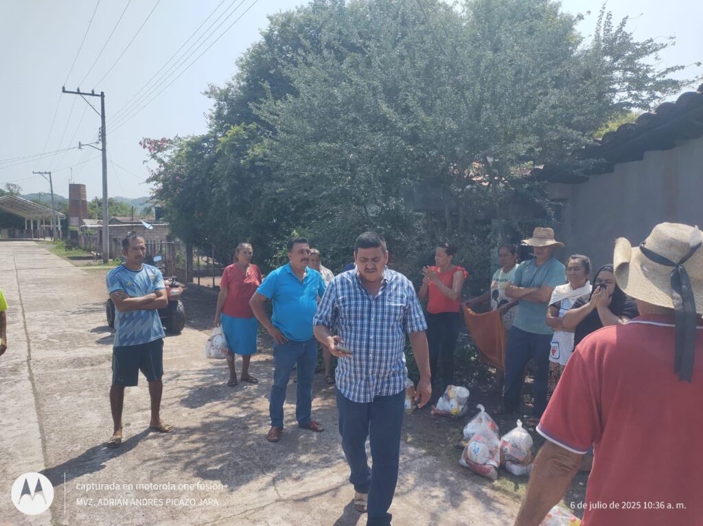 Durante el encuentro, el edil hizo entrega de despensas alimentarias a las familias de la localidad y se comprometió a gestionar la dotación de semilla de maíz para quienes la han solicitado, con el propósito de fortalecer la actividad agrícola de la zona.