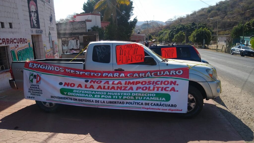 En entrevista con Gisela García García, presidenta del Comité Ejecutivo Municipal del PRI en Carácuaro, señaló que la toma es por la manera amañada en que el Comité Ejecutivo Estatal ha llevado a cabo el proceso de selección de candidatos en su municipio, donde solo se le permitió la inscripción como precandidata a la actual presidenta municipal de Carácuaro Elisenda Garduño Garduño emanada del PRD.
