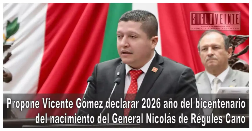 Para que se declare el 2026 como el año del Bicentenario del General Nicolás de Régules Cano y se realice sesión solemne el 10 de septiembre en Tacámbaro, se pronunció el diputado Vicente Gómez Núñez.