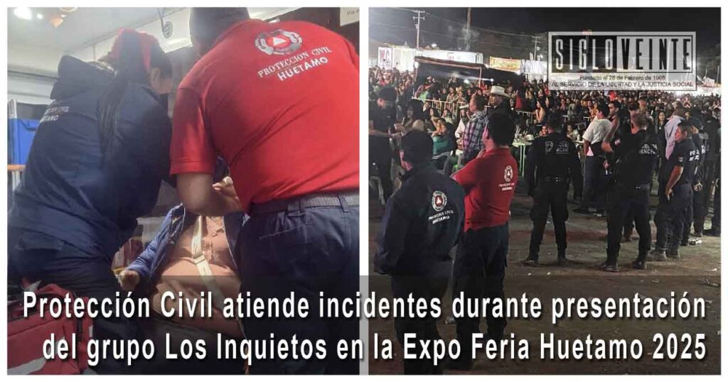 La Coordinación de Protección Civil Municipal de Huetamo brindó atención prehospitalaria a diversas personas que resultaron con lesiones leves durante el concierto del grupo Los Inquietos, realizado la noche de este sábado como parte de las actividades de la Expo Feria Huetamo 2025.