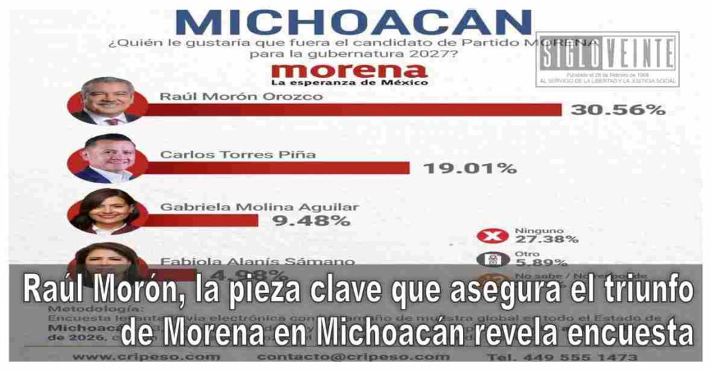 De acuerdo con los resultados más recientes de la casa encuestadora Cripeso, el senador Raúl Morón Orozco se ha posicionado como el perfil líder y más competitivo para encabezar el proyecto de la Cuarta Transformación en Michoacán rumbo al 2027. Los datos no solo reflejan su ventaja en las preferencias internas, sino que proyectan la continuidad del dominio político de Morena en el estado.